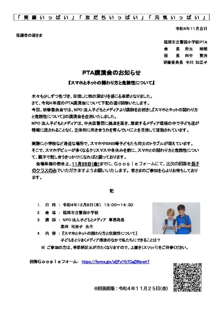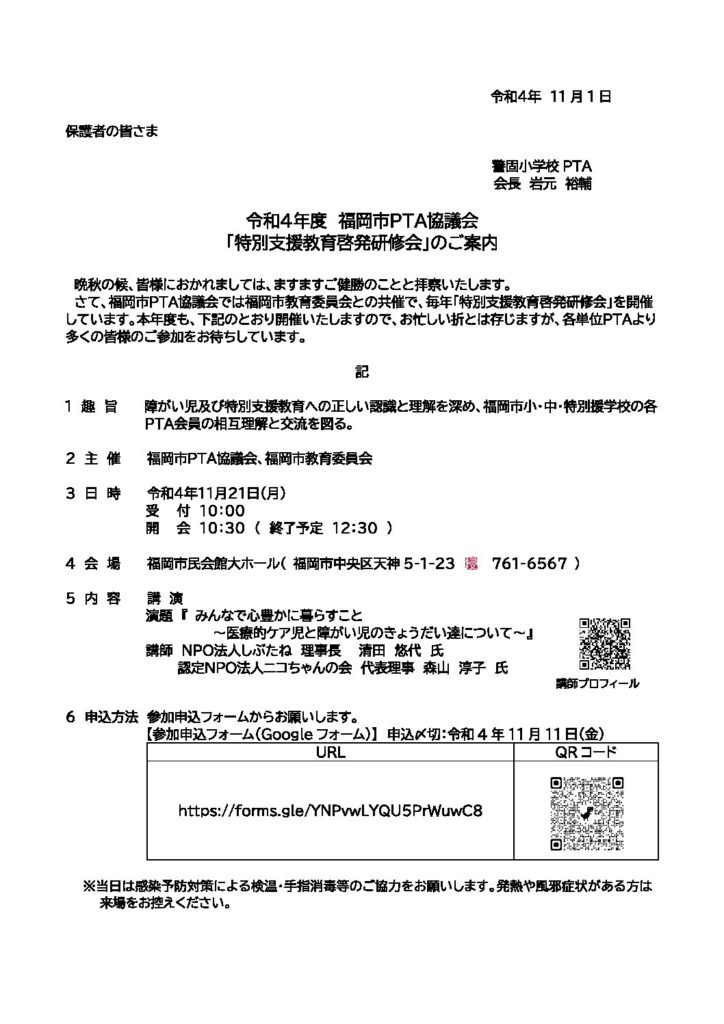 令和4年度 福岡市PTA協議会「PTA啓発研修大会」のご案内