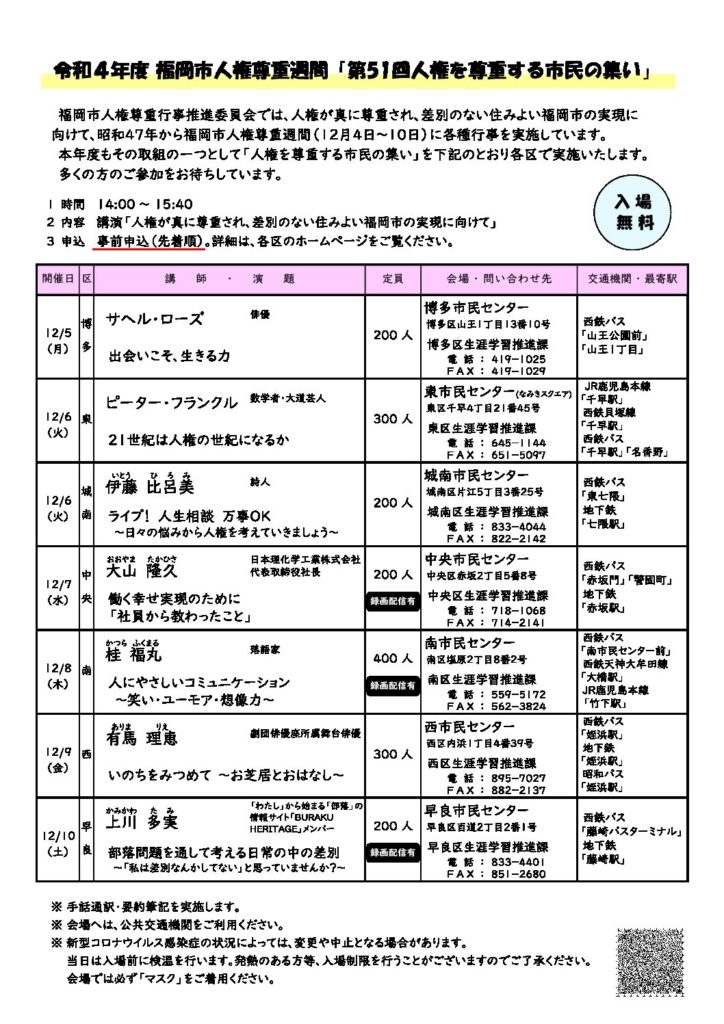 令和4年度福岡市人権尊重週間「第51回人権を尊重する市民の集い」のご案内