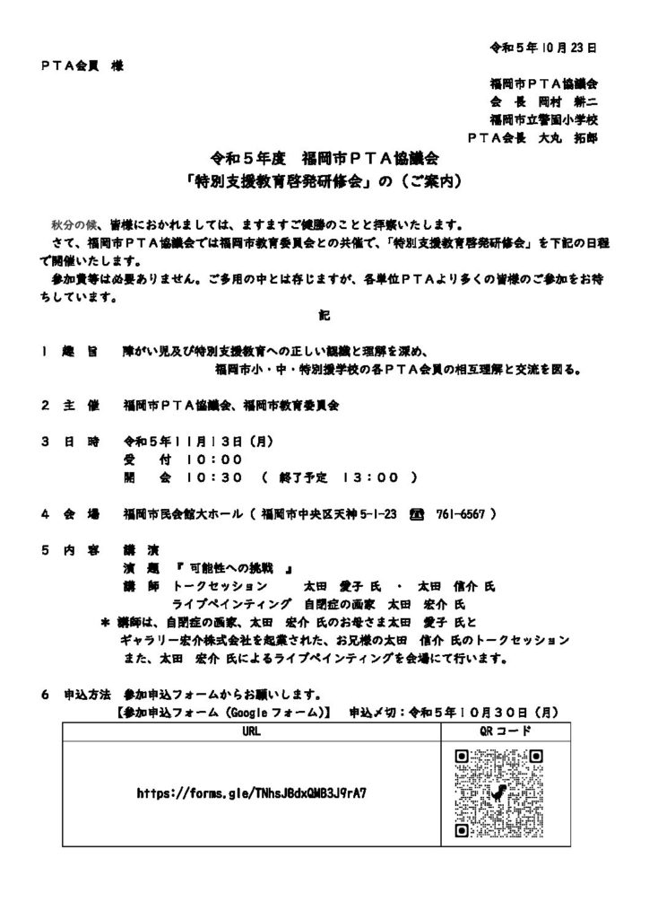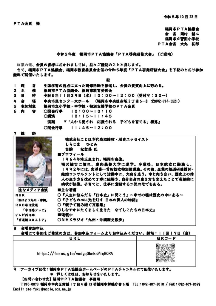 「PTA啓発研修大会」のご案内