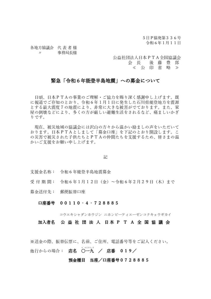 「令和6年能登半島地震」募金について