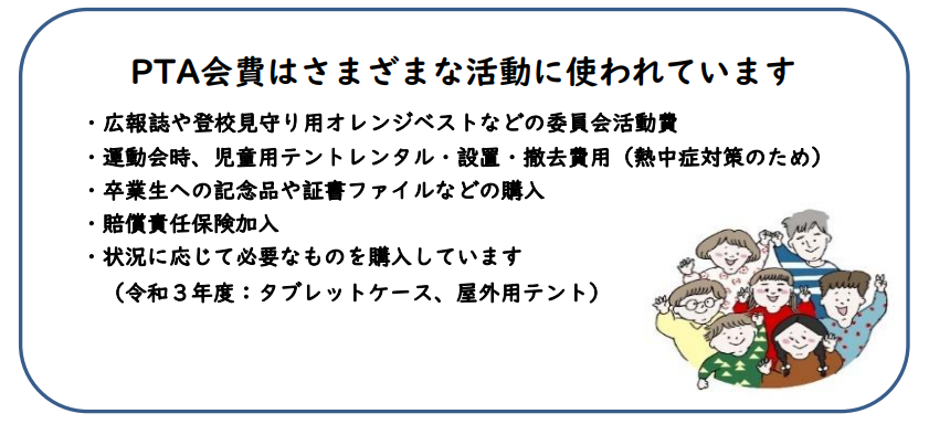 *PTA会費(月400円)は、給食費等と合わせて振り替えられます。