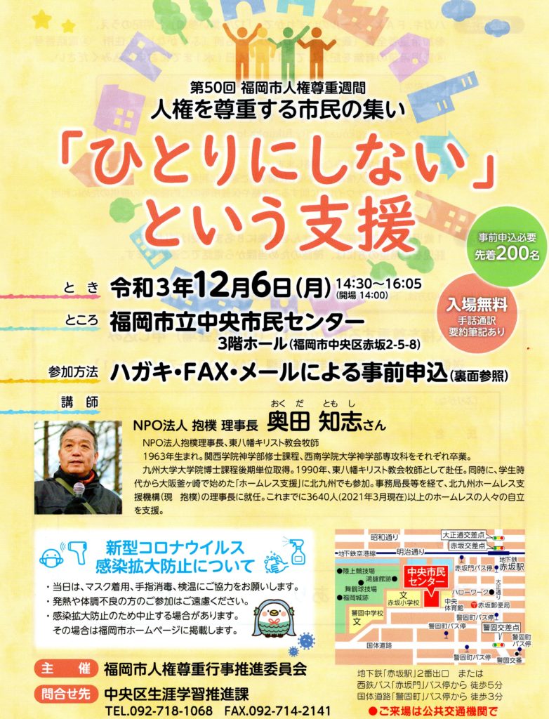 講師:NPO法人 抱樸 理事長 奥田知志さん